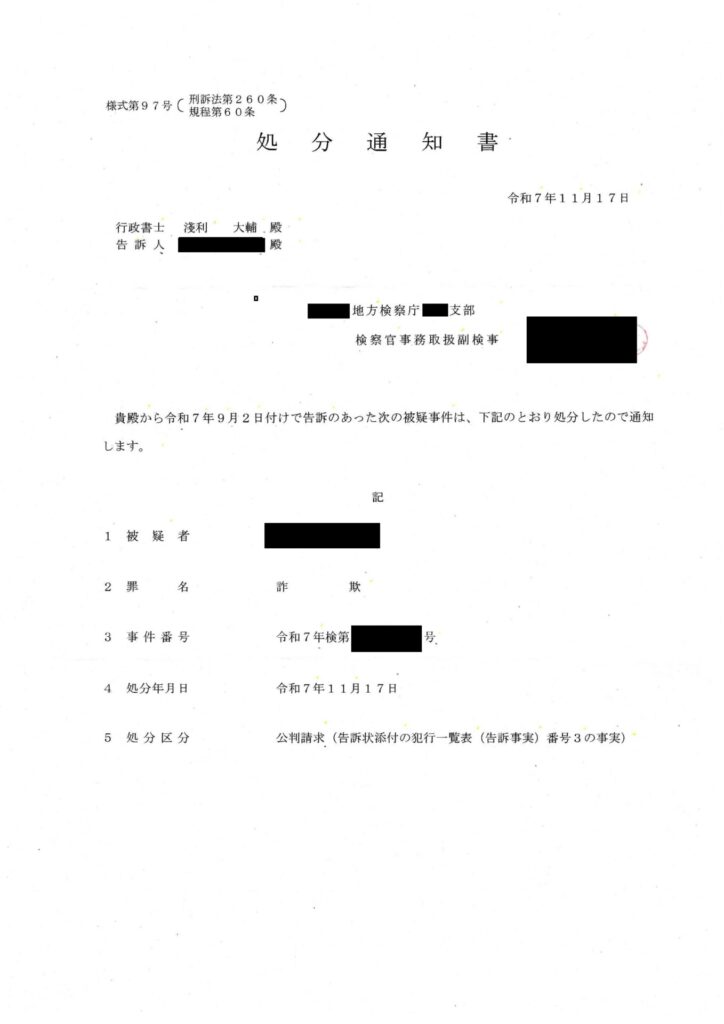 告訴状・告発状を提出すると検察庁から処分通知書が送られてきます【元刑事が解説】